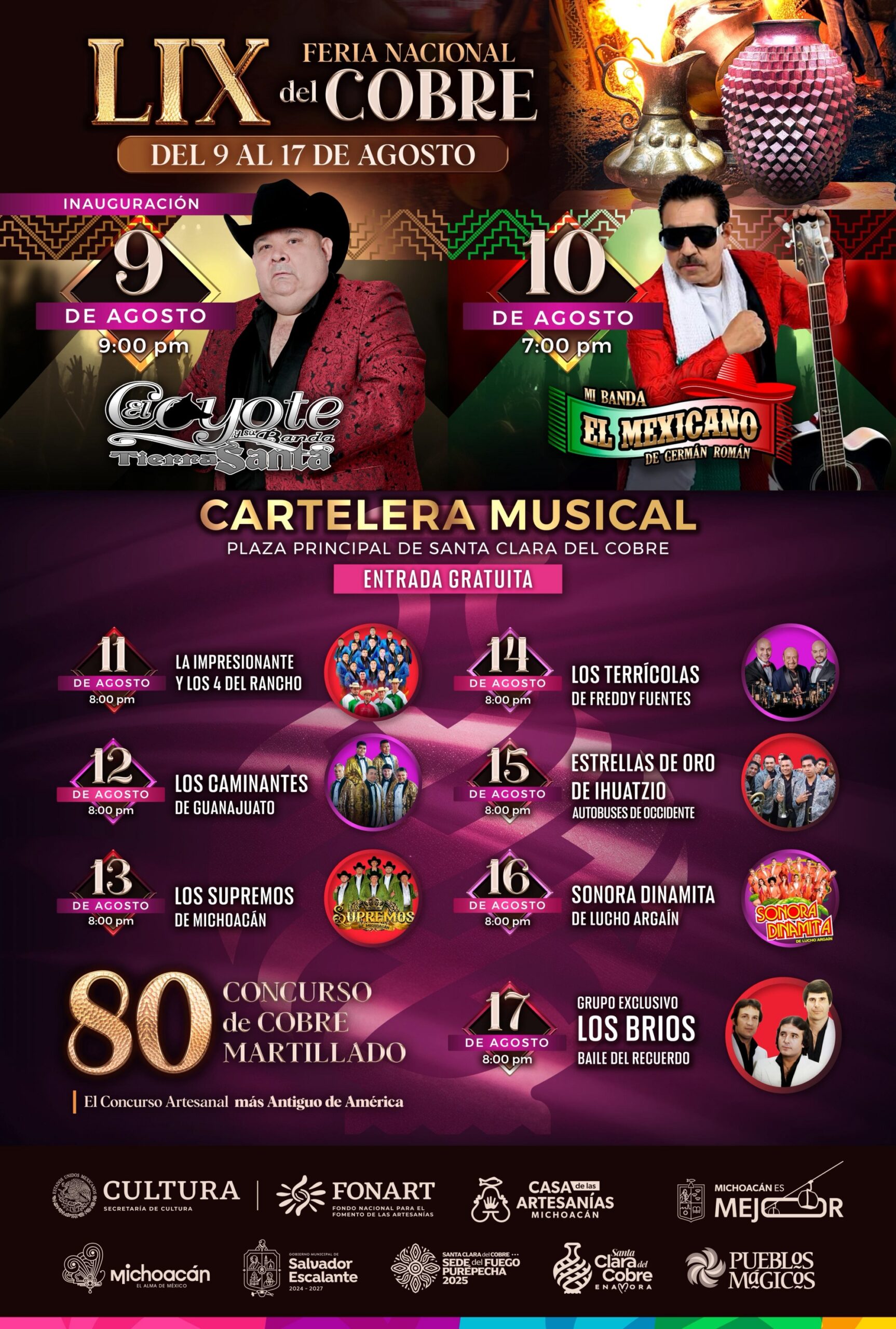 Cartelera Musical de la Feria de Santa Clara del Cobre 2025