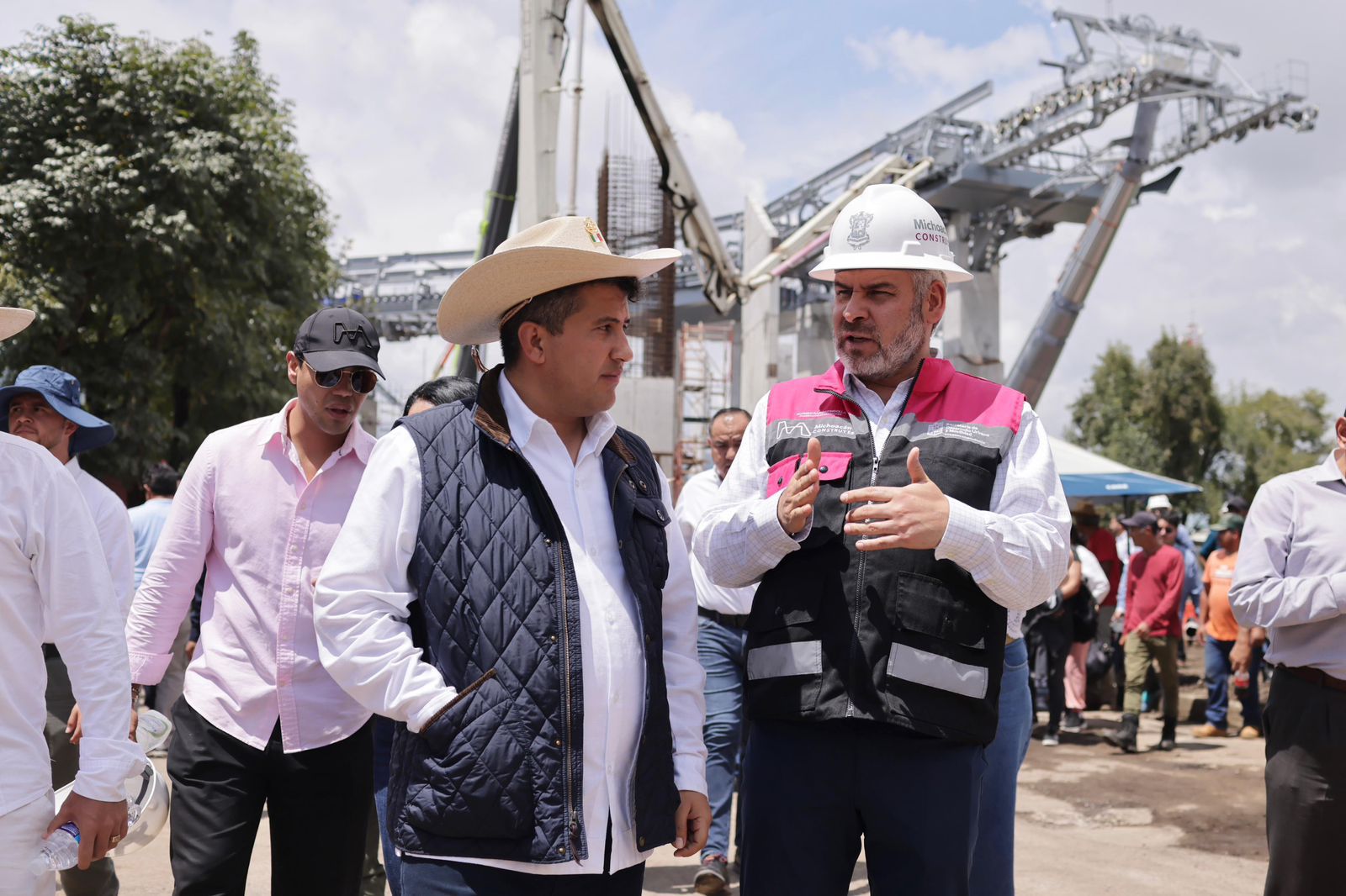 Uruapan, Michoacán, 26 de agosto de 2025.- El gobernador Alfredo Ramírez Bedolla supervisó los trabajos de construcción del teleférico de Uruapan donde constató avances importantes para su próxima puesta en operación al servicio de la ciudadanía y sector turístico.