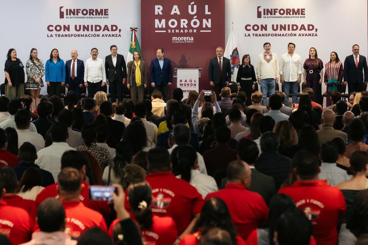 Morelia, Mich., a 19 de octubre de 2025.- «La transformación en México avanza de la mano de la Presidenta Claudia Sheinbaum; en Michoacán la vamos a consolidar», aseguró el senador de Morena por la entidad, Raúl Morón Orozco, al presentar ante el pueblo su 1er. Informe Legislativo.