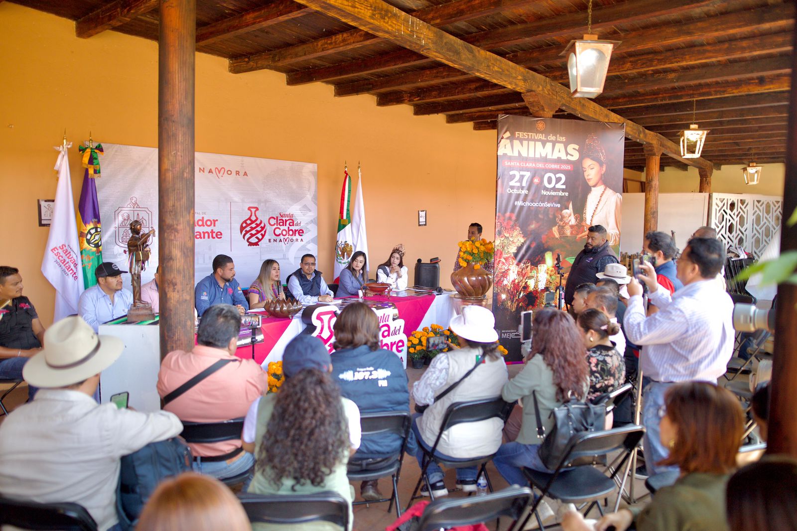 Santa Clara del Cobre, Michoacán, 22 de octubre de 2025.– Con el firme compromiso de “Gobernar con amor, justicia y libertad”, la presidenta municipal de Salvador Escalante, Dayana Pérez Mendoza, encabezó la Presentación Oficial del Cartel y Programa Cultural del Festival de las Ánimas 2025, uno de los eventos más esperados en la región, que se llevará a cabo del 27 de octubre al 2 de noviembre en el Pueblo Mágico de Santa Clara del Cobre.