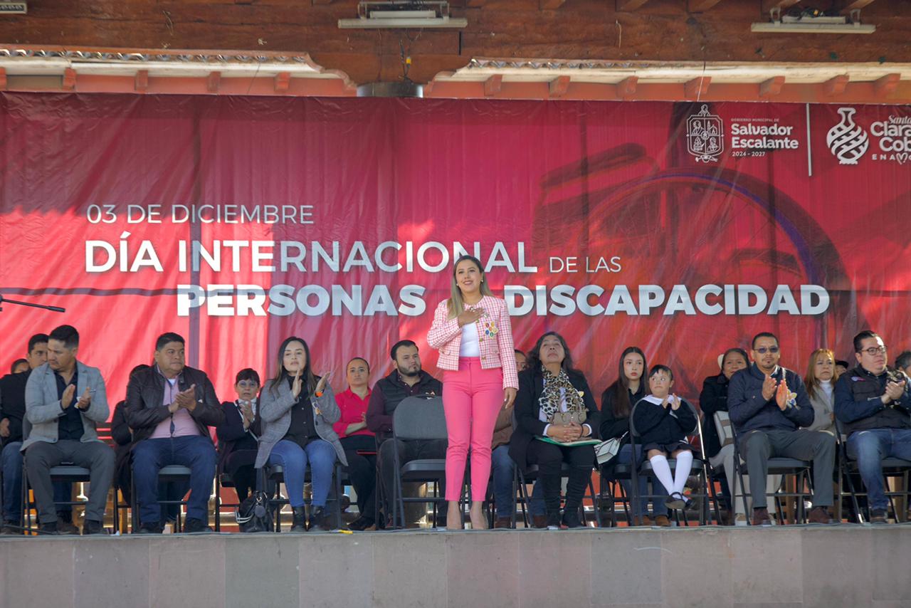 Salvador Escalante, Michoacán; Diciembre del 2025.– En el marco del Día Internacional de las Personas con Discapacidad, la presidenta municipal, Dayana Pérez Mendoza, participó en el acto conmemorativo, en el que destacó la gran importancia que tiene el fortalecer una sociedad basada en el respeto y la dignidad para todas y todos.