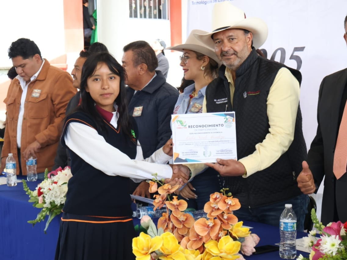 Ante autoridades educativas, madres y padres de familia, así como representantes ejidales y de la comunidad, Arreola destacó que este plantel se ha consolidado como un referente regional, no solo por su calidad académica, sino por el talento artístico, cultural y deportivo de su alumnado, quienes recibieron reconocimientos a su trayectoria y participación.