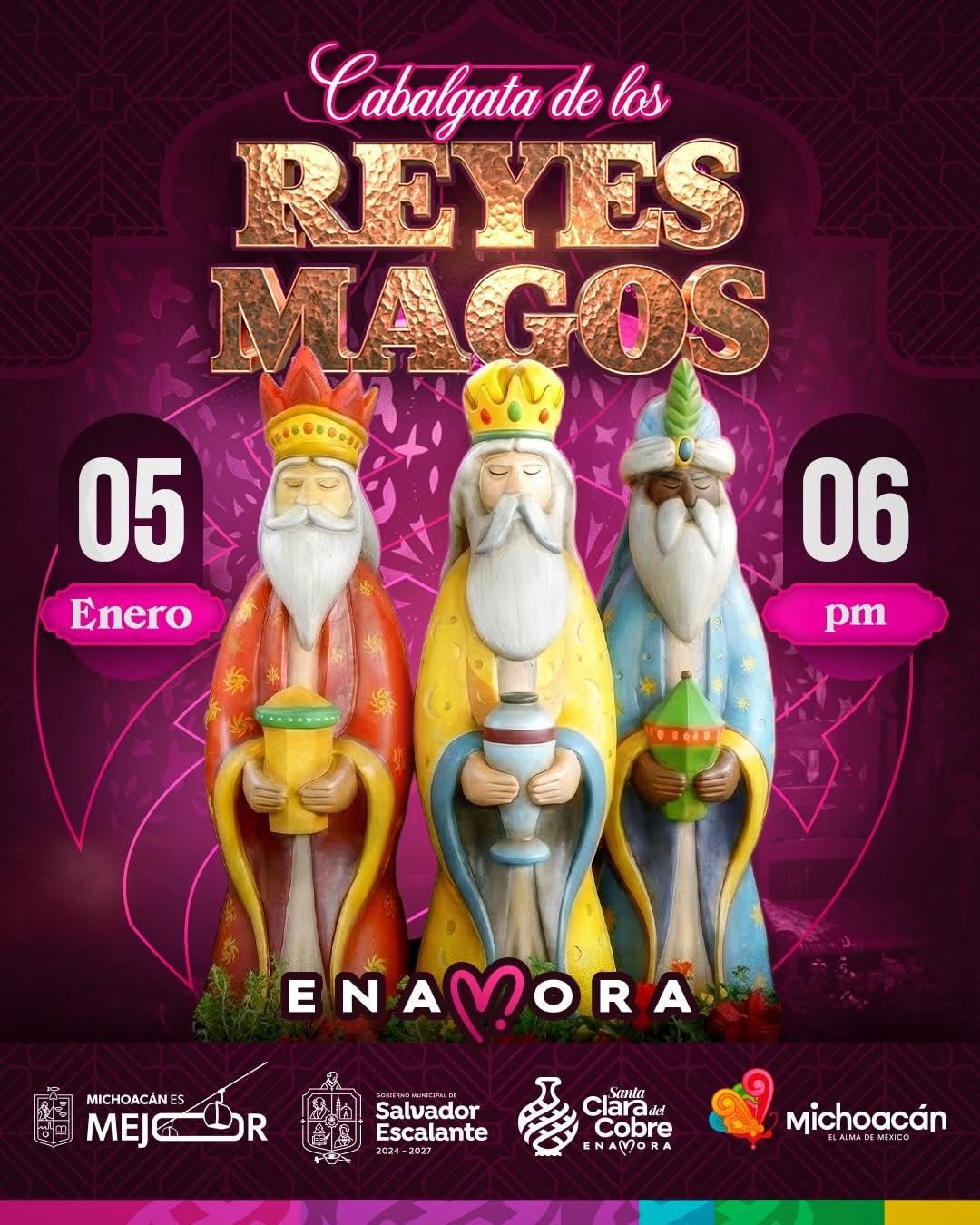 Santa Clara del Cobre, Michoacán; Enero del 2026.- Santa Clara del Cobre se llenará de ilusión este lunes 5 de enero, cuando a las 6:00 de la tarde dé inicio la tradicional Cabalgata de los Reyes Magos, partiendo desde la Plaza del Cazo con rumbo a la Plaza Principal, en una celebración pensada especialmente para las niñas y los niños del municipio.