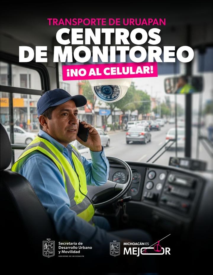 Uruapan, Michoacán, 10 de enero de 2026.- Los centros de control de flota y monitoreo del transporte público de Uruapan vigilarán que los choferes que estén en servicio no hagan uso del celular, además de que identificarán si fuman o muestran signos de cansancio al volante, detalló la secretaria de Desarrollo Urbano y Movilidad, Gladyz Butanda Macías.