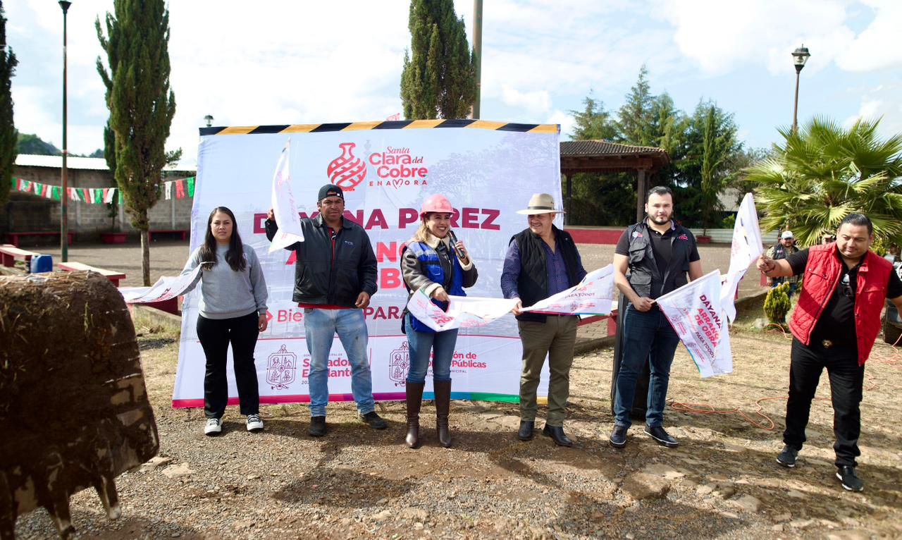 Iramuco, Salvador Escalante, Michoacán; Enero 17 del 2026.- La presidenta municipal de Salvador Escalante, Dayana Pérez Mendoza, encabezó este vierenes el arranque de obra de empedrado en la calle conocida como “La Joya”, en la comunidad de Iramuco, una acción que mejorará de manera directa la movilidad y seguridad de las familias de la zona.