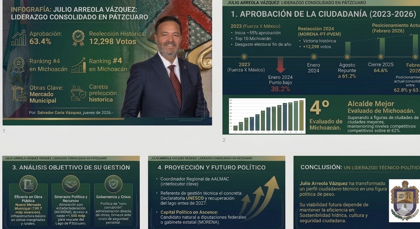 Y es que el liderazgo del ingeniero julio Alberto Arreola ha logrado lo que parecía imposible de logar: unir la capacidad técnica con el sentir del pueblo, convirtiendo la transparencia y la paz en las llaves del progreso del municipio, especialmente del pueblo mágico de Pátzcuaro.