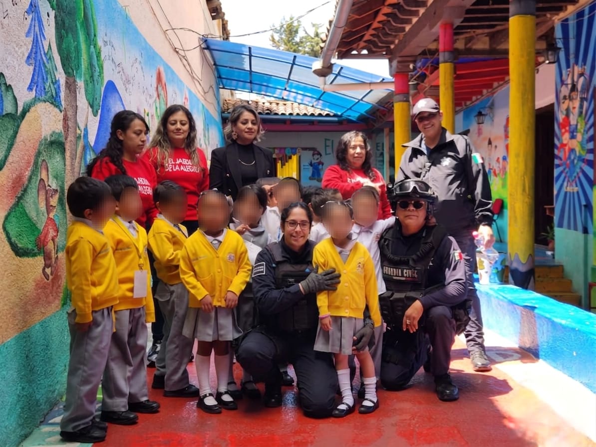 Pátzcuaro, Michoacán, 18 de marzo de 2026.- La Policía Municipal de Pátzcuaro, a través de su Departamento de Prevención del Delito, visitó el plantel educativo “Jardín de la Alegría”, en la colonia Centro, con el objetivo de fortalecer los valores, la cultura de la prevención y la cercanía con la comunidad escolar.
